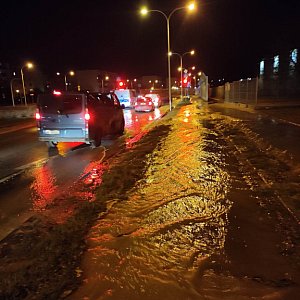 Efekt pękniętej rury przy ul. Witosa 76 jest co najmniej niepokojący. Do zdarzenia doszło dziś (17 marca) przed godziną 20.