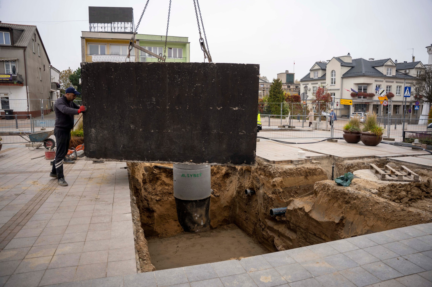 Przed ratuszem rozpoczęto montaż podziemnego zbiornika retencyjnego na deszczówkę. Umożliwi on oszczędne gospodarowanie wodą, która zasili rośliny. Równocześnie ruszyło sadzenie roślinności. Nowe drzewa oraz ozdobne krzewy w centrum Ciechanowa zazielenią obszar o powierzchni ok. 1100 m2.