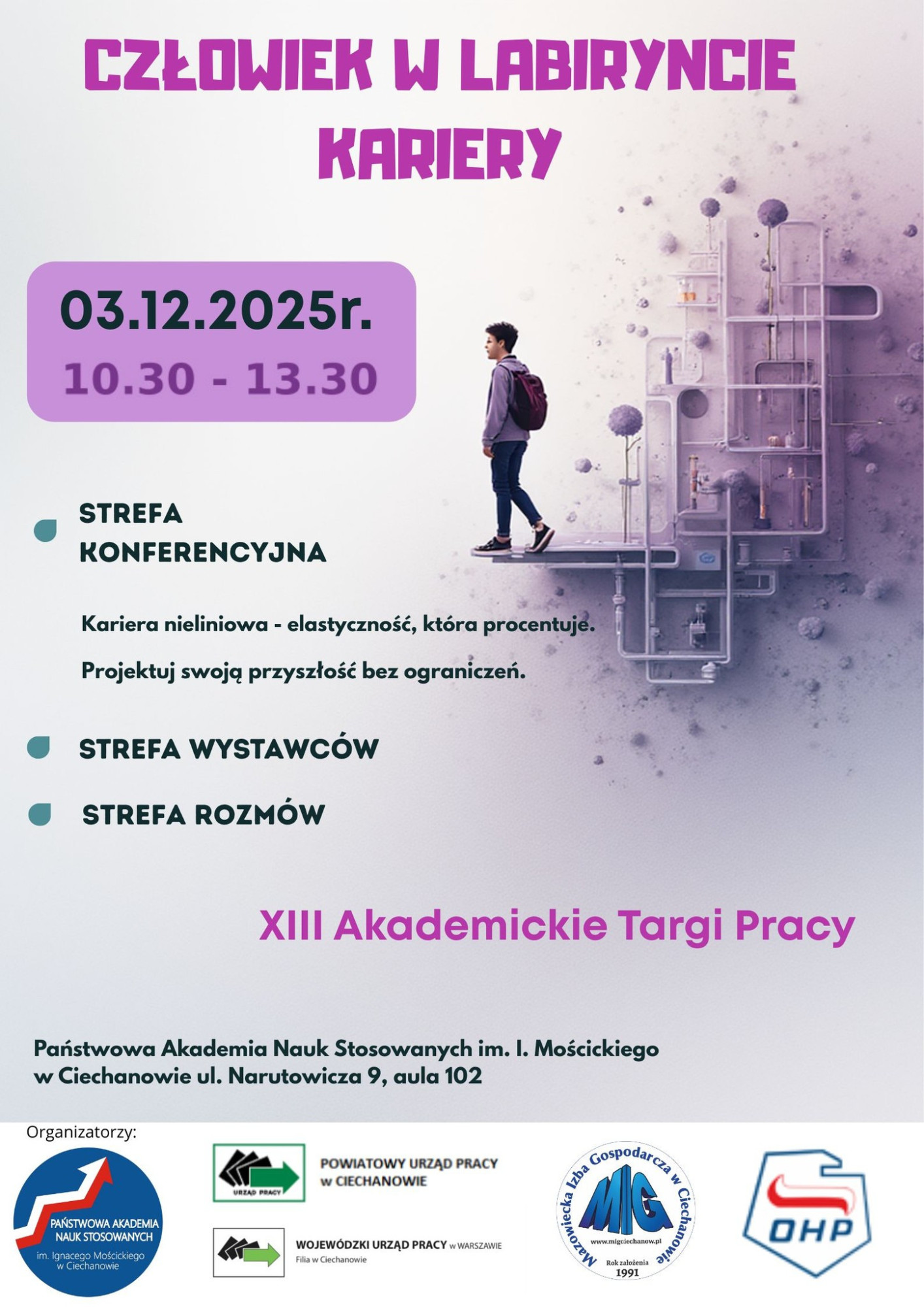 XIII Akademickie Targi Pracy to niepowtarzalna okazja, by poszerzyć swoje horyzonty, nawiązać nowe relacje biznesowe oraz dowiedzieć się więcej o najnowszych trendach rynku pracy.