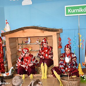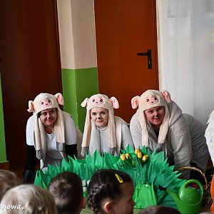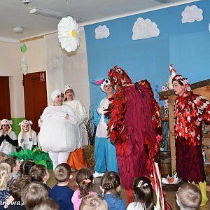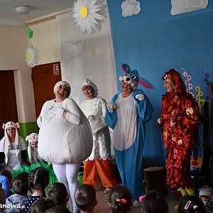 Stroje i scenografia robiły wrażenie. Jak na Wielkanoc przystało, w spektaklu wystąpiły kurki, owieczki, kogucik, gąska, zajączek i wielkie jajko. Uśmiech nie schodził dzieciom z twarzy. Było to ważne wydarzenie w życiu przedszkola, gdyż po raz pierwszy zadebiutowali w takiej roli nauczyciele.