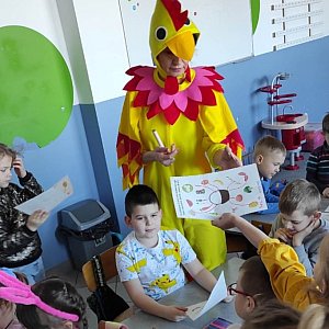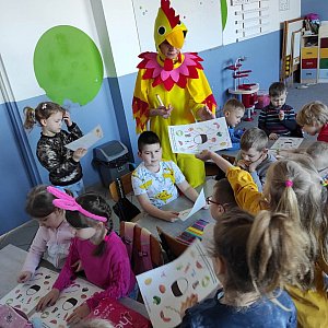 W związku ze zbliżającymi się świętami Wielkanocnymi dzieci z zerówki (0b) ze Szkoły Podstawowej nr 4 w Ciechanowie miały niespodziewaną wizytę wyjątkowych gości. Klasę odwiedził Zajączek oraz Kurczak wielkanocny, którzy przeprowadzili z dziećmi świąteczne zajęcia.
