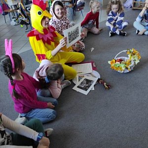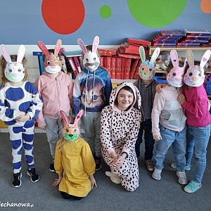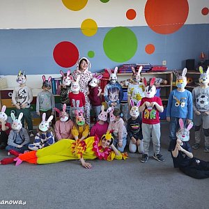 Opowiadali o tradycjach i zwyczajach związanych z Wielkanocą, omawiali zawartość i symbolikę koszyczka. Dzieci czynnie uczestniczyły w rozwiązywaniu tematycznego quizu, miały również okazję własnoręcznie wykonać maski zajączków wielkanocnych oraz maskotki ze skarpet.