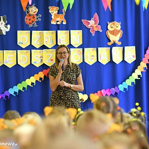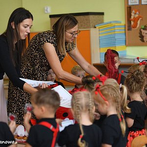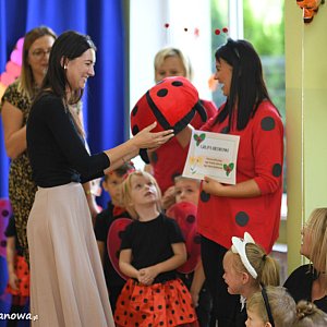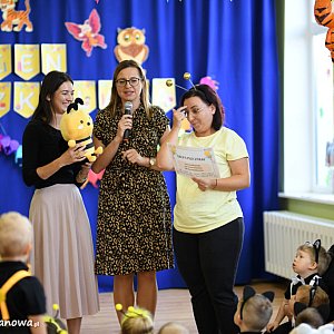 Dyrektor placówki - Renata Błaszkowska po każdej prezentacji wręczyła dzieciom i wychowawczyniom plakietkę na drzwi sali z odpowiednim zwierzątkiem, a rodzice przekazali piękną maskotkę grupową.
