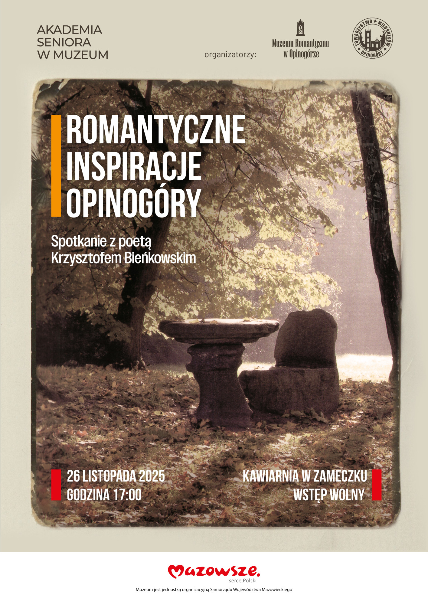 Muzeum Romantyzmu w Opinogórze wraz z Towarzystwem Miłośników Opinogóry zaprasza na kolejne spotkanie w ramach Akademii Seniora.