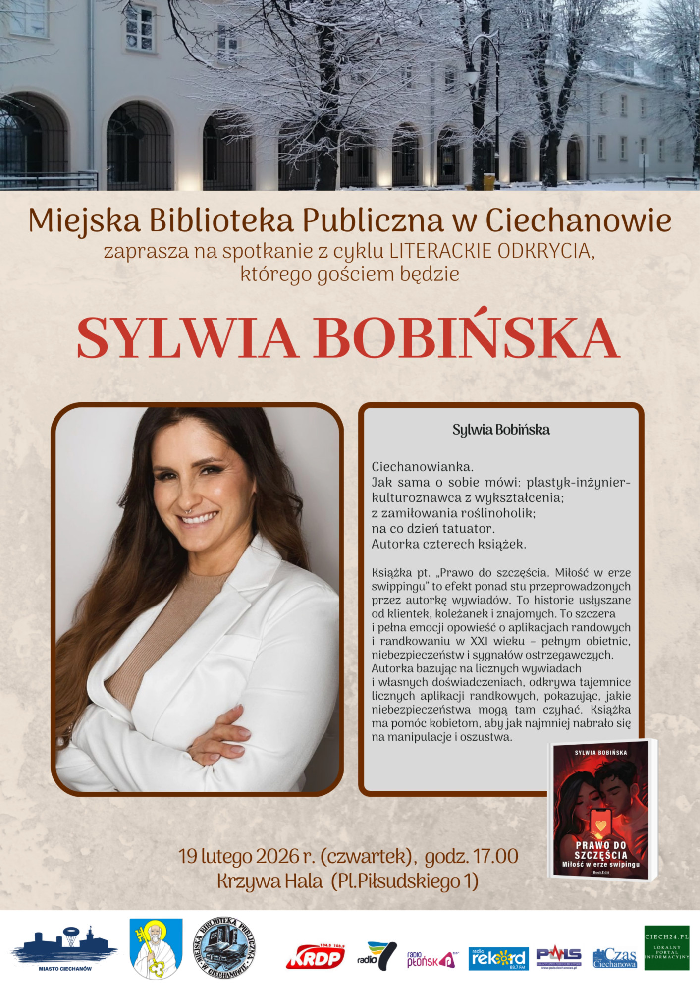 Miejska Biblioteka Publiczna w Ciechanowie Zaprasza na spotkanie autorskie, którego gościem będzie ciechanowianka Sylwia Bobińska.