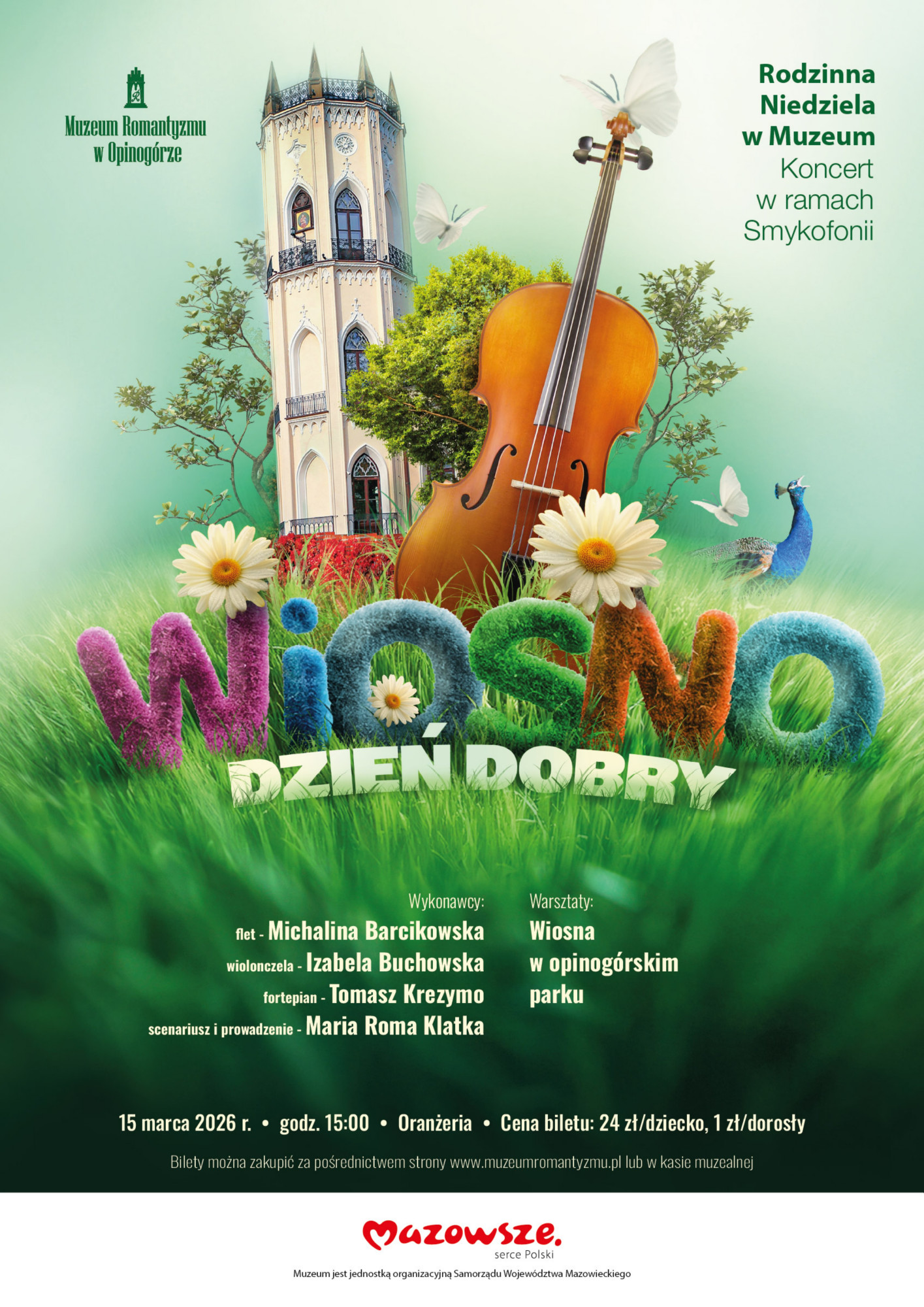 Podczas koncertu pt. „Dzień dobry, wiosno!" poszukamy pierwszych znaków nowej pory roku ukrytych w muzyce. Flet zaświergocze jak skowronek nad łąką, wiolonczela opowie ciepłą historię o topniejącym śniegu, a fortepian rozświetli wszystko jak marcowe słońce. Będziemy wspólnie słuchać, zgadywać, poruszać się i odkrywać, jak muzyka potrafi malować obrazy bez użycia farb. Sprawdzimy, czy dźwięki mogą pachnieć jak świeża trawa i czy melodia potrafi rozkwitnąć jak kwiat.