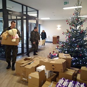 Magia świąt Bożego Narodzenia dotknęła w tym roku także mazowieckich Terytorialsów, którzy w przededniu wigilii, z pełnymi kartonami podarunków, pojawili się w Zakładzie opiekuńczo – leczniczym w Kraszewie Czubakach. Była to żołnierska odpowiedź na akcję „Każdy może zostać Świętym Mikołajem” ogłoszoną przez dyrekcję zakładu. Wspieranie lokalnej społeczności jest wpisane w misję Wojsk Obrony Terytorialnej dlatego też, wystarczyło zaledwie kilka dni by uzbierać kilkanaście kartonów wypełnionych po brzegi. Dzięki żołnierzom 5 MBOT, dzieciaki dostały wsparcie w postaci żywności dedykowanej najmłodszym tj. słoiczków, kaszek, deserków,soczków, środków pielęgnacyjnych tj. kosmetyki, chusteczki nawilżone, pampersy. Nie zabrakło także tego co dzieciaki lubią najbardziej, czyli zabawek i słodyczy.