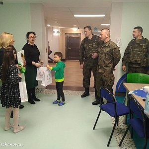 W tym samym czasie inni żołnierze 5 MBOT również realizowali swoją przedświąteczną misję przekazując 50 pluszowych Tygrysków oddziałowi ratunkowemu ostrołęckiego szpitala. Tygryski to pomysł żołnierzy ratowników pola walki 52. batalionu z Komorowa. Oni doskonale wiedzą, że stres jest największym wrogiem w leczeniu i terapii małych pacjentów.