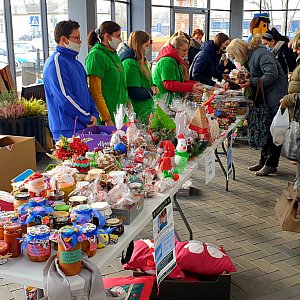 Można zakupić ciasta, ozdoby świąteczne i przetwory. Jest też loteria pluszakowa.