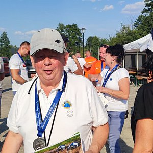Mariusz Stawicki - szef Klubu Petanki nie mógł powstrzymać wzruszenia, gdy niespodziewanie otrzymała z rąk starosty Joanny Potockiej-Rak tytuł: „Super Bohatera Powiatu Ciechanowskiego”.