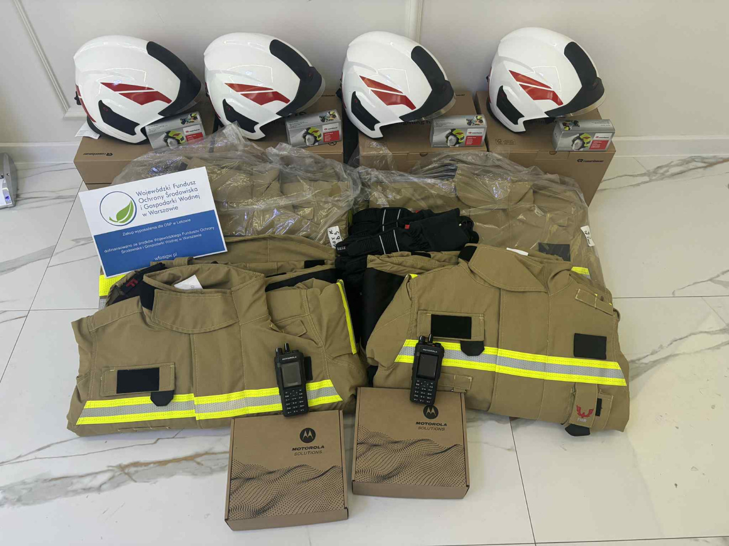 Dzięki dofinansowaniu z Wojewódzkiego Funduszu Ochrony Środowiska i Gospodarki Wodnej w Warszawie w ramach programu „Zapobieganie zagrożeniom środowiska i poważnym awariom poprzez doposażenie Ochotniczych Straży Pożarnych oraz doposażenie Młodzieżowych Drużyn Pożarniczych” zostało zakupione nowe wyposażenie dla strażaków Ochotniczej Straży Pożarnej w Lekowie.