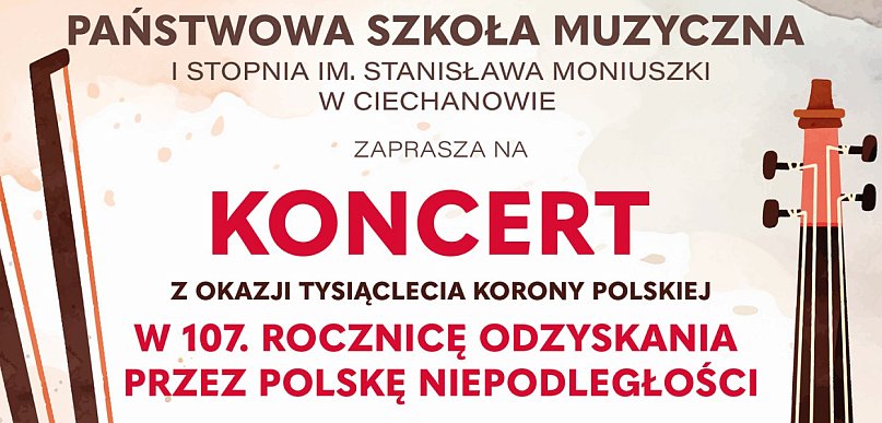 14 listopada (piątek) mieszkańcy będą mogli wysłuchać koncertu przygotowanego z okazji 107. rocznicy odzyskania przez Polskę niepodległości. Wydarzenie wpisuje się też w obchodzone w tym roku Tysiąclecie Korony Polskiej.