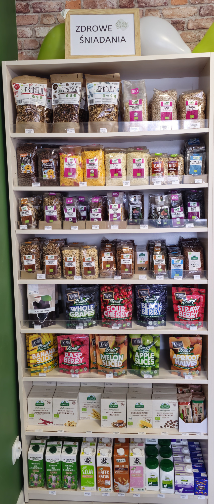 Granola, chrupkie pieczywo bezglutenowe, orzechy, suszone owoce, a także słodkie przekąski i czekolady bez cukru, wegańskie i bezglutenowe, oraz ekologiczne syropy - wszystko w jednym miejscu, by rozpocząć dzień zdrowo i smacznie.