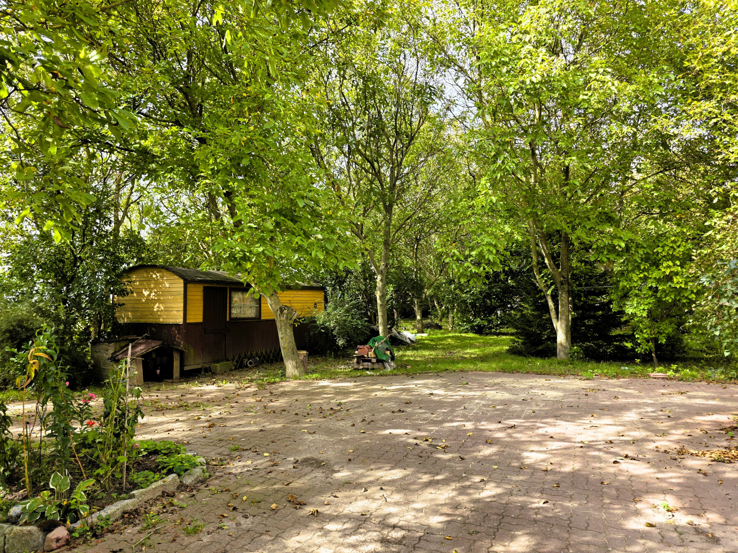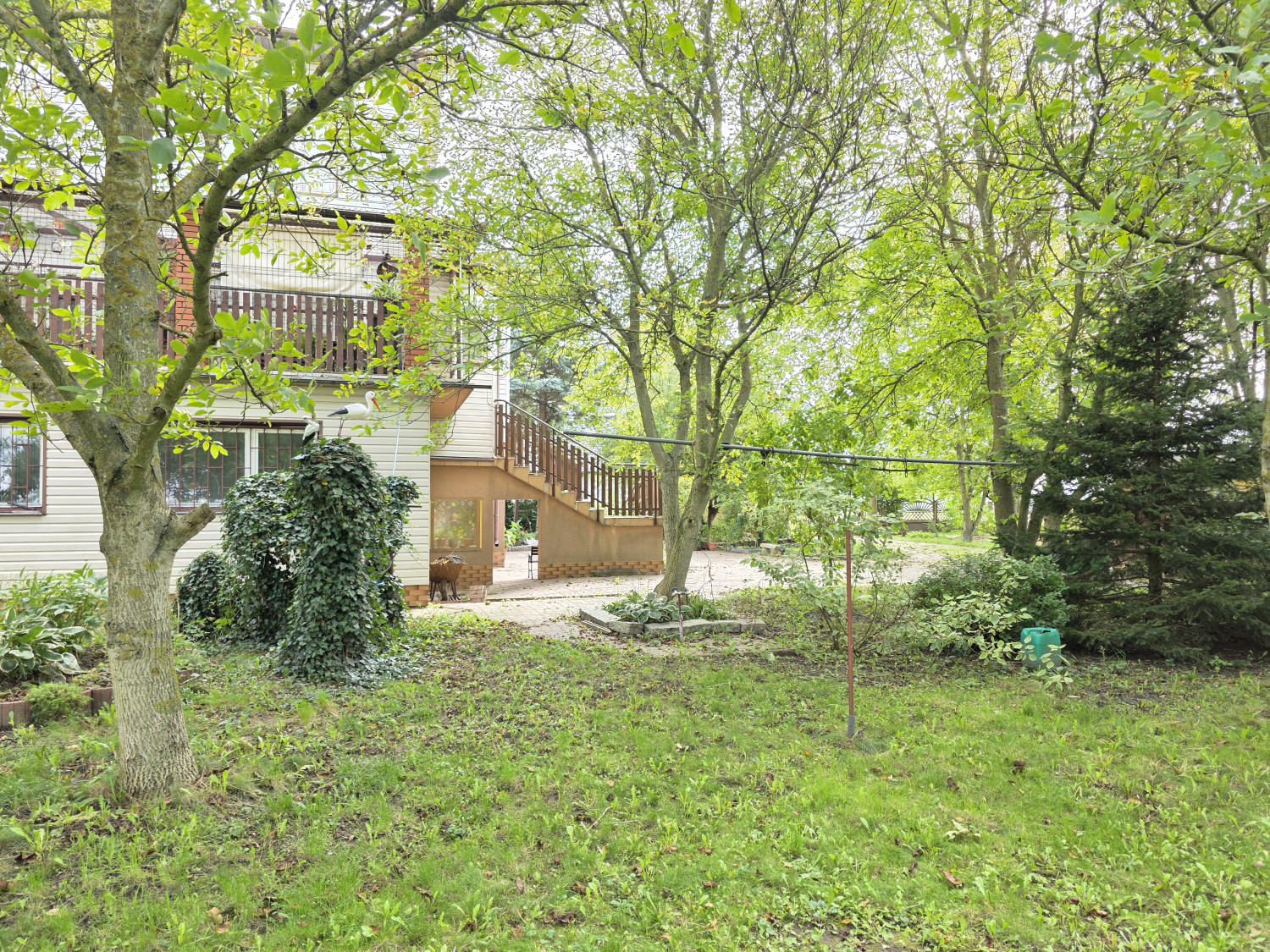 Twój nowy świat. Ponad pół hektara ziemi! To ogromna przestrzeń, która daje niesamowite poczucie swobody i prywatności. Ogród jest już zagospodarowany – znajdziesz tu liczne drzewa owocowe (głównie orzechy włoskie) oraz ozdobne świerki. To idealne miejsce na warzywniak, trampolinę, basen czy wieczorne ogniska z przyjaciółmi.