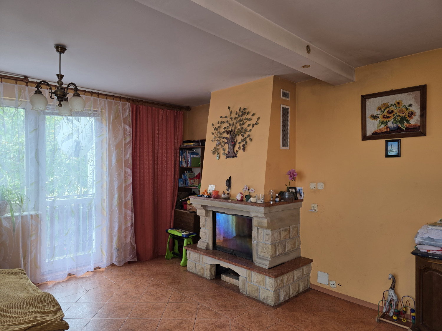 To solidny, przytulny dom wybudowany w 2002 roku. Jego sercem jest salon z klimatycznym kominkiem. Zima tutaj, z kubkiem gorącej herbaty, będzie czystą przyjemnością. Co ważne, ciepło z kominka jest mechanicznie rozprowadzane do każdego pokoju.