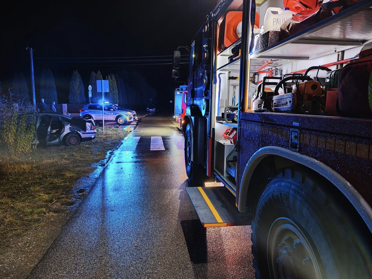 Ze wstępnych ustaleń policjantów wynika, że pojazdy poruszały się od strony Glinojecka w kierunku Ciechanowa, 43-letnia kierująca Skodą zwolniła, chcąc wykonać manewr skrętu w lewo, natomiast 57-letnia kierująca Peugeotem nie zachowała bezpiecznej odległości i uderzyła w tył poprzedzającego pojazdu. W wyniku zderzenia kierująca skoda wjechała do przydrożnego rowu, natomiast kierująca peugeotem przejechała przez przepust rowu i zatrzymała się na polu. W wyniku zdarzenia kierujące pojazdami zostały przewiezione do szpitala w Ciechanowie.