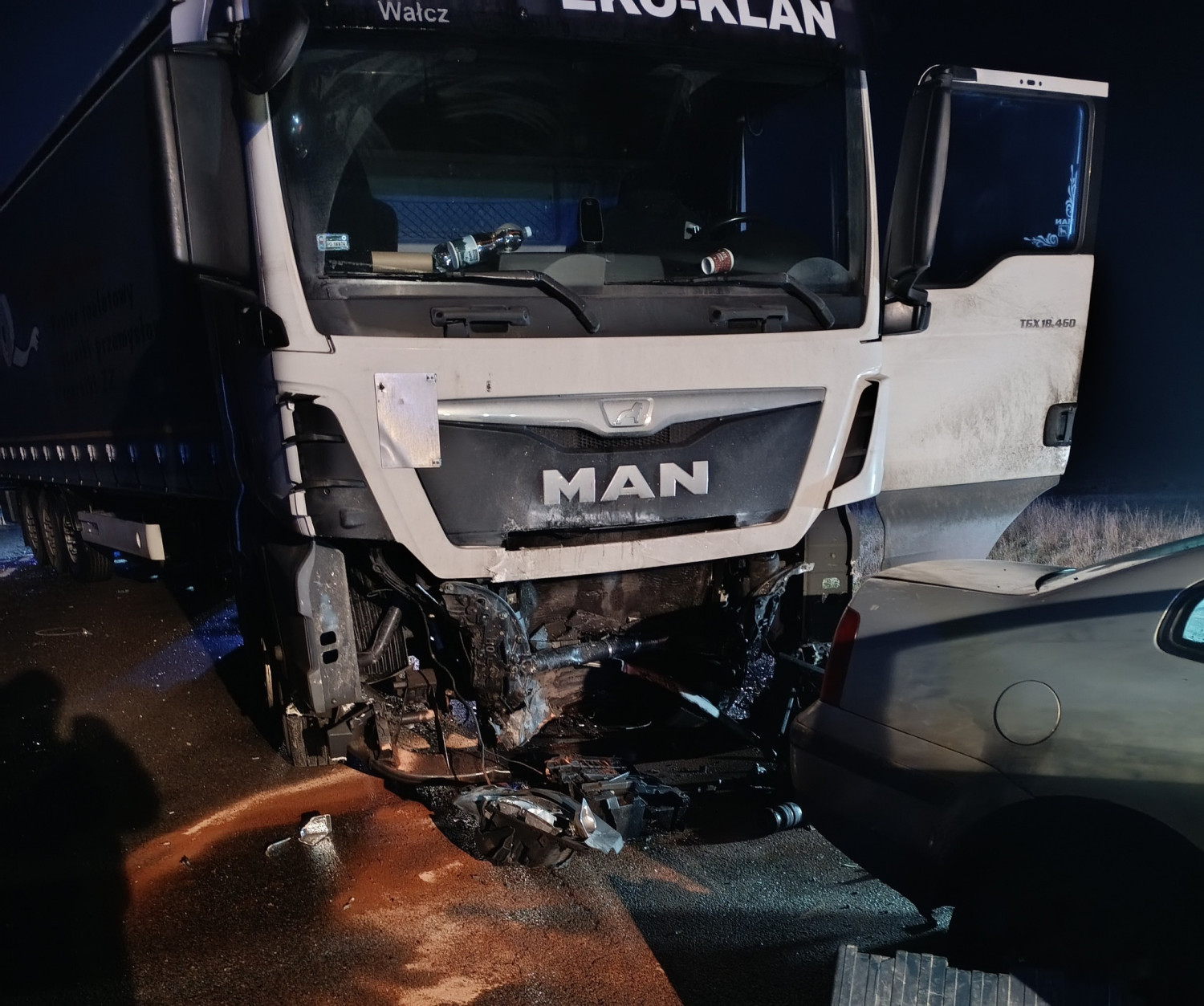 Kierowca volkswagena poniósł śmierć na miejscu. Kierujący pojazdem ciężarowym nie odniósł obrażeń.
