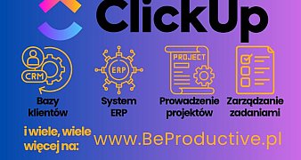 Promuj ogłoszenieSzukasz sposobu na lepszą organizację pracy? Wdrożenie ClickUp to kompleksowe rozwiązanie, które pozwala usprawnić zarządzanie projektami, zadaniami i zespołem. Dzięki naszemu ... czytaj więcej