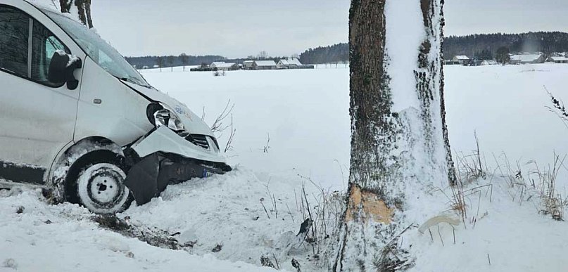 Zjechał na pobocze i uderzył w drzewo. Dwie osoby ranne